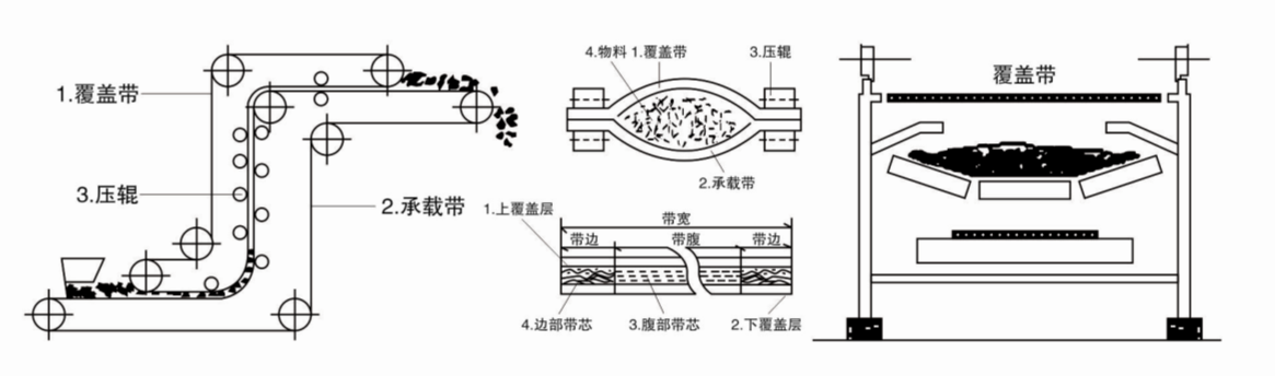 The covered and sealed conveyor belt covers the conveying system from dust, water, and wind in the environment. The skeleton layer is made of special nylon fabric, steel wire cord layer, etc., which not only has excellent longitudinal elasticity but also excellent lateral rigidity. Therefore, it is widely used in discharge machines, recycling devices, automatic discharge conveyors, etc.